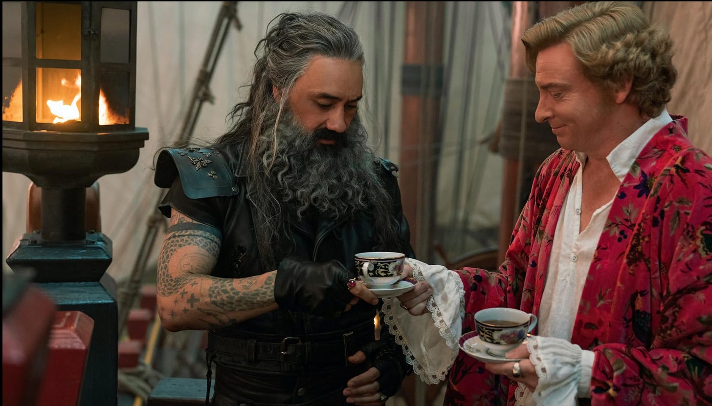 About three weeks ago I fell in love hard with Our Flag Means Death. If you’re not familiar, it’s a romantic comedy series on HBO starring Rhys Darby as Stede Bonnet the Gentleman Pirate, and Taika Waititi as Blackbeard, along with a fantastic supporting cast.