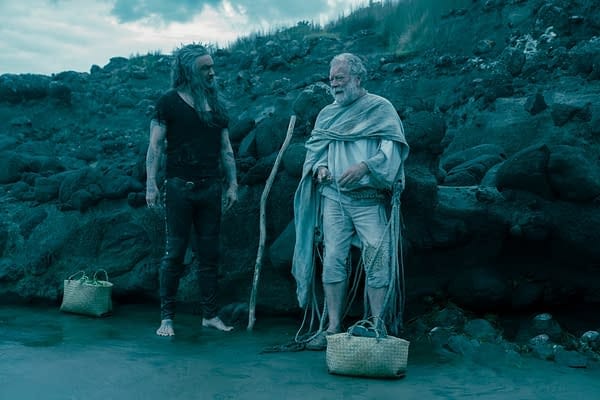 After secretly tailing this mysterious “Gentleman Pirate” who managed to best Blackbeard’s first mate Izzy Hands, Blackbeard boards a ship to find Stede gasping at the end of a noose and gut-stabbed, surrounded by mayhem. Classic meet-cute.